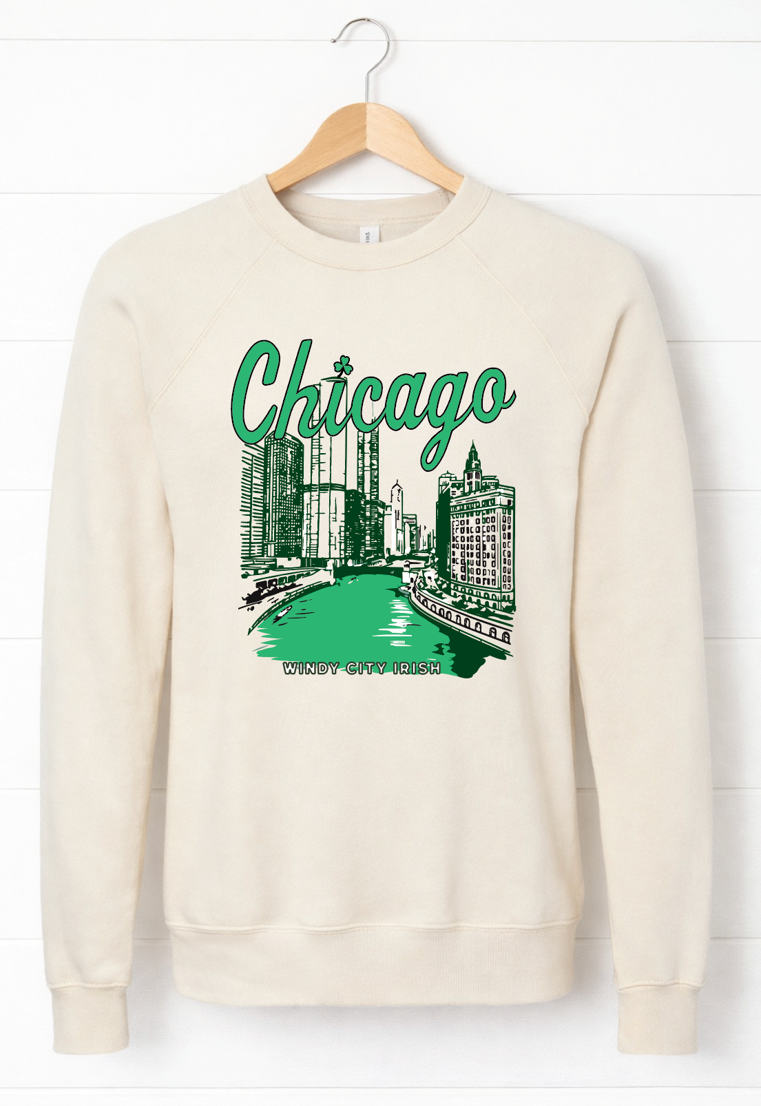 One of the most iconic Chicago St. Patrick's Day traditions in sweatshirt form- this was our NUMBER 1 SELLER! The sweatshirt is a cream color- not white like the photo may appear on some devices.